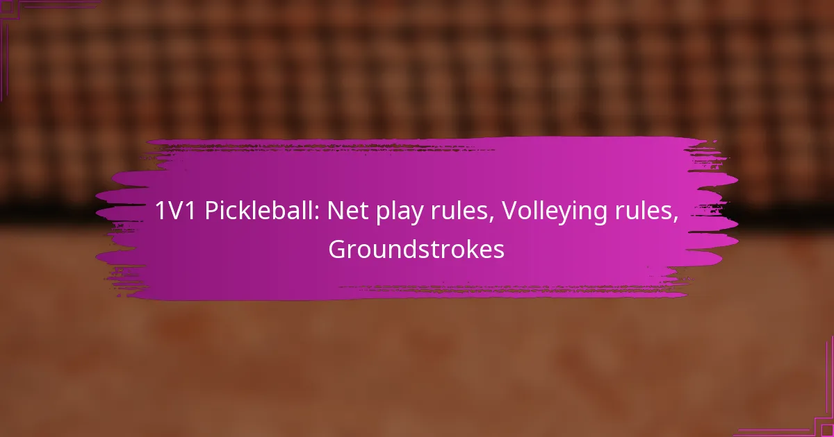 In 1V1 pickleball, mastering net play, volleying, and groundstrokes is essential for competitive gameplay. Net play involves specific strategies and rules that dictate player interactions at the net, while volleying requires an understanding of the no-volley zone and proper techniques. Groundstrokes, made after the ball bounces, are fundamental for maintaining rallies and controlling the pace of the game.